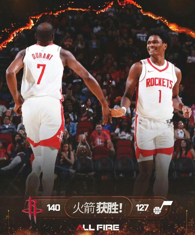 季前赛-杜兰特首秀20分火箭大胜爵士 申京13+13阿门19+7+6