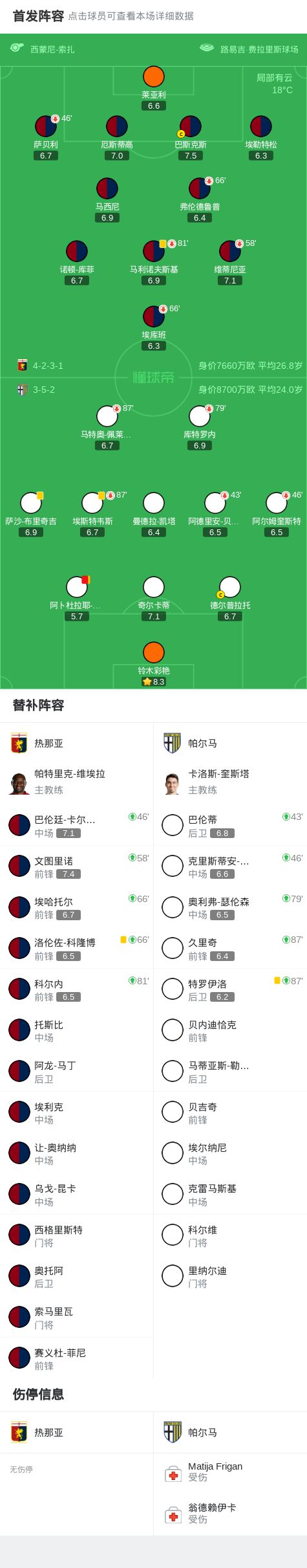热那亚0-0帕尔马,阿卜杜拉耶-恩迪亚耶染红